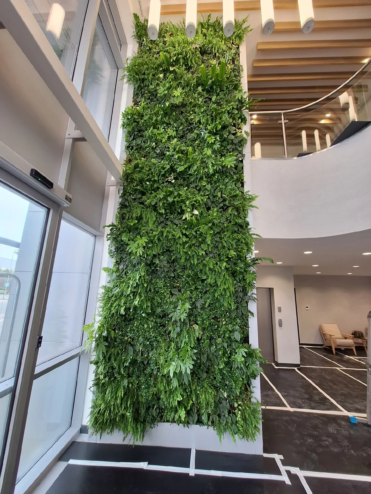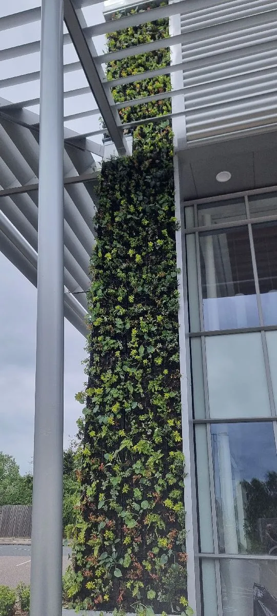 Origin Business Park was installed earlier this year, and stands at 126 m2 (internal and external wall). This project highlights the importance of biophilia and biodiversity, as both the internal and external walls will see great improvement in both in the coming months.