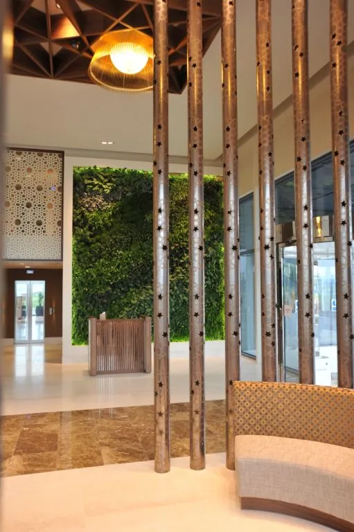 The brief from the client was to create a six star hotel reception, an atmosphere of richness and structural drama that our full-height living wall communicates.