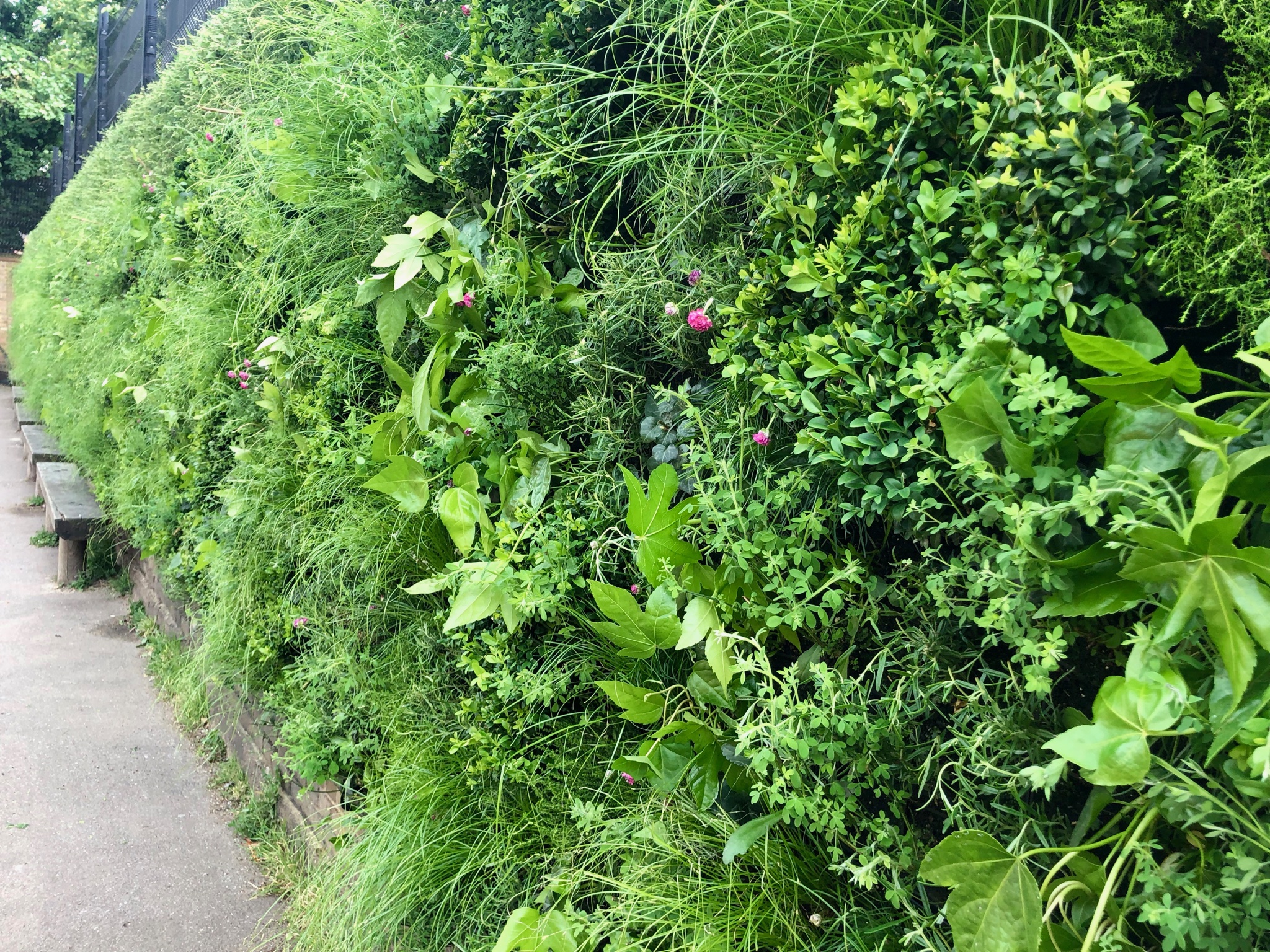 Viritopia used a ranging plant palette to create a living wall that is not only beautiful, but helps to regulate temperatures and aid air purification.