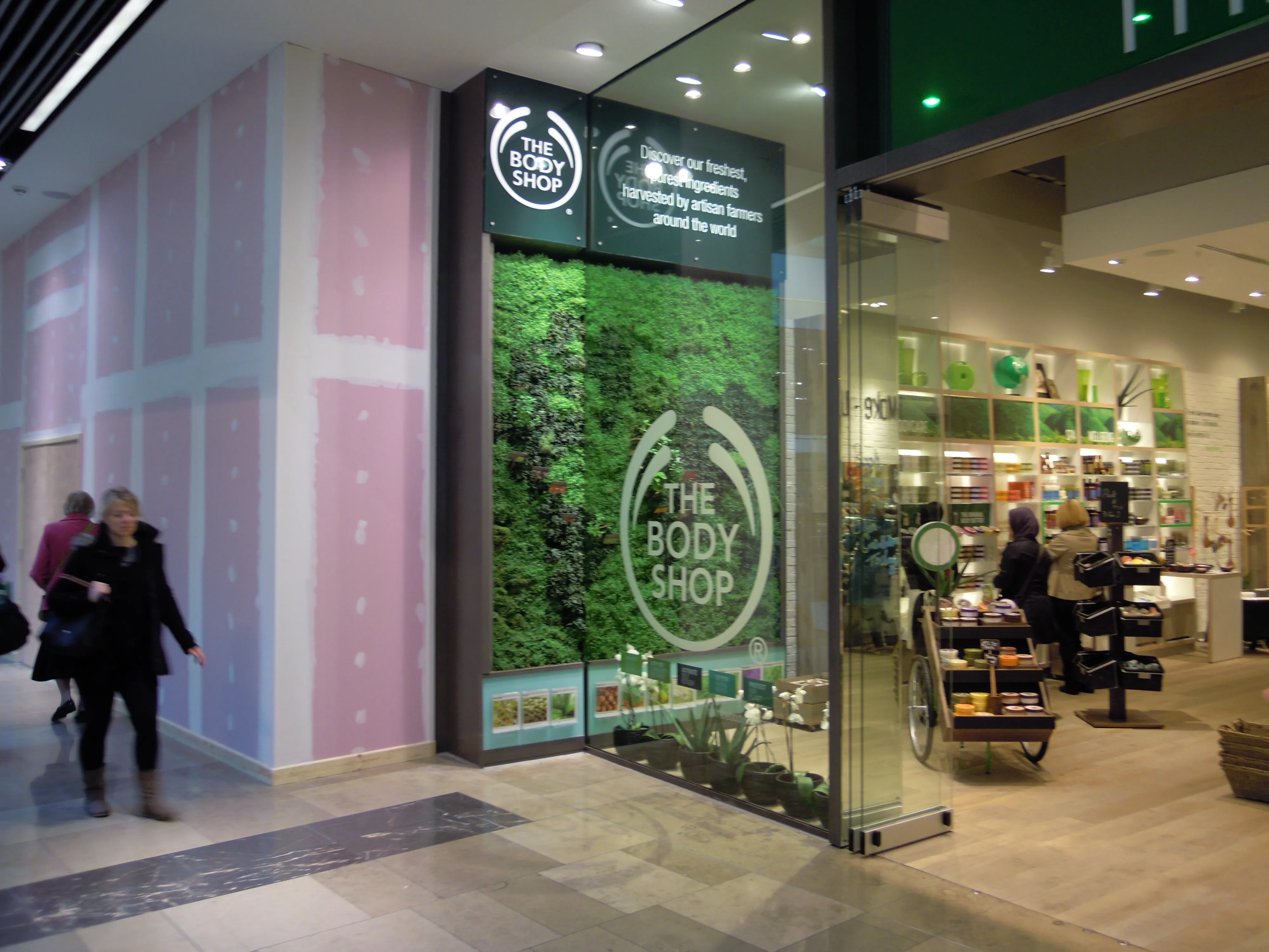 Due to the nature of The Body Shop store in Westfield Shopping Centre, Stratford, Viritopia was approached to create an eye-catching piece of work. Consequently a living wall was produced depicting a world map; each country containing native species of plants that correspond with the line of ethically produced products in the store.