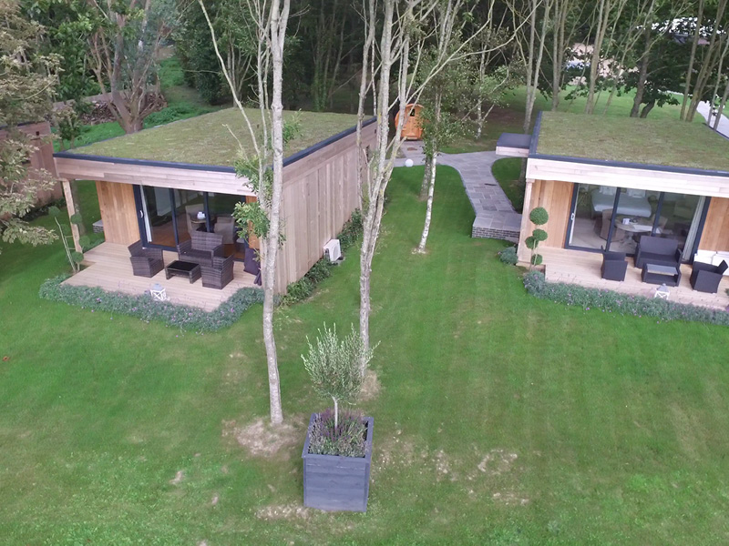 The lodges are contemporary and high-end providing both luxury and comfort. Built from western-clad cedar they are designed to blend seamlessly into the woodland surroundings providing a fun additional element to the vineyard experience, but also reinforcing the Estate's commitments to environmental causes. As much as the lodges are intended to provide temporary shelter for guests at the Estate, they also offer longer-term sanctuary for wildlife with green roofs presenting ideal conditions for many species to thrive.