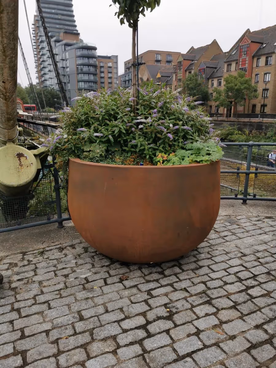 With brick and steel being the prevailing materials in this historic dockyard, the designers wanted to introduce some natural touches to contradict the harsher surfaces. The building itself is listed so there were restrictions to what we could do. The solution was to build a free-standing living wall that hides parts of the historic wall that are more run-down or covered in unattractive pipework, without affecting the original structure.