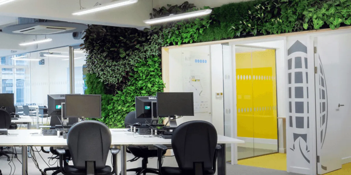 They were planning a refurbishment of their central London office space and decided to include a green wall to improve the air quality and acoustics of the office.