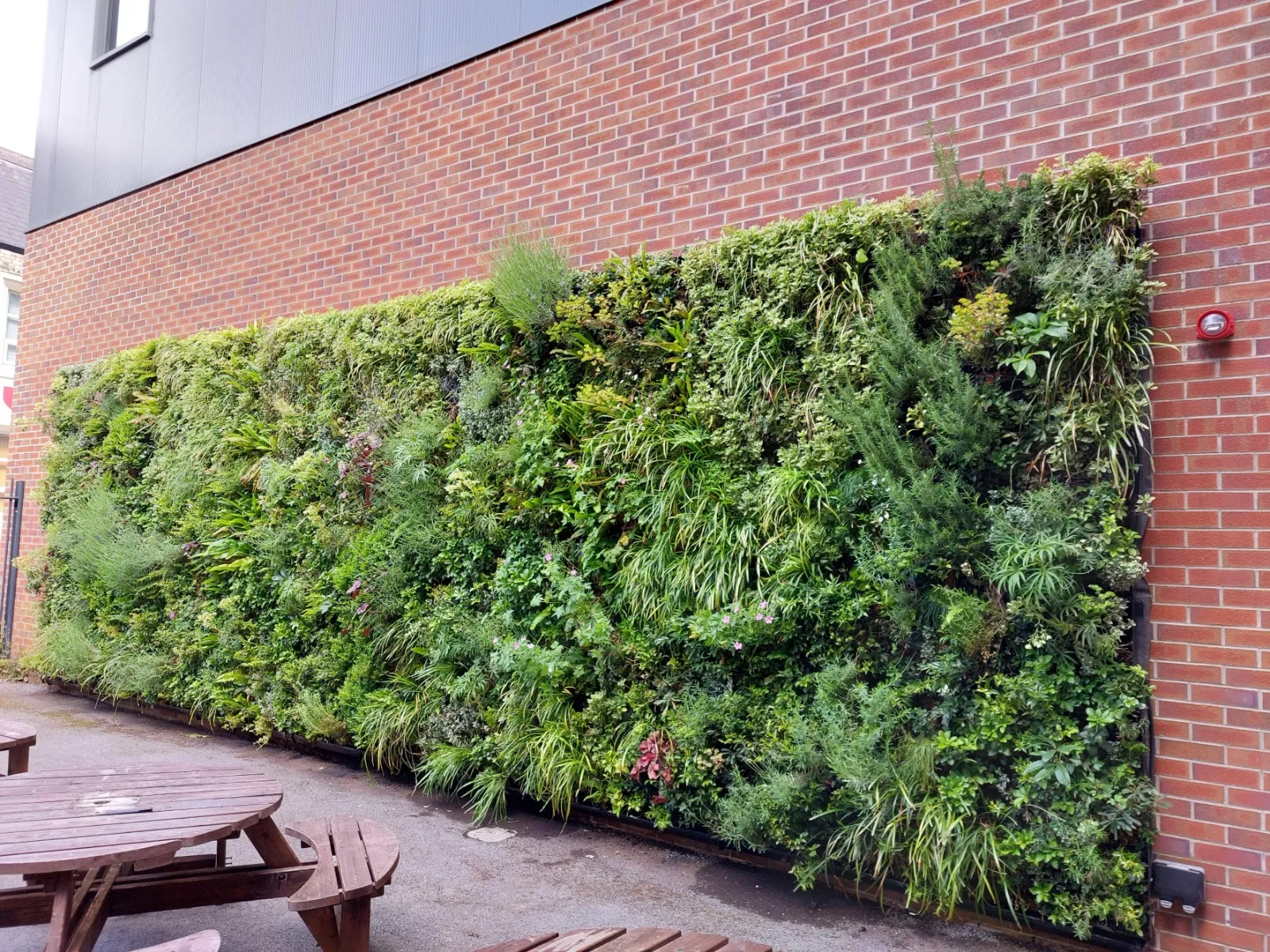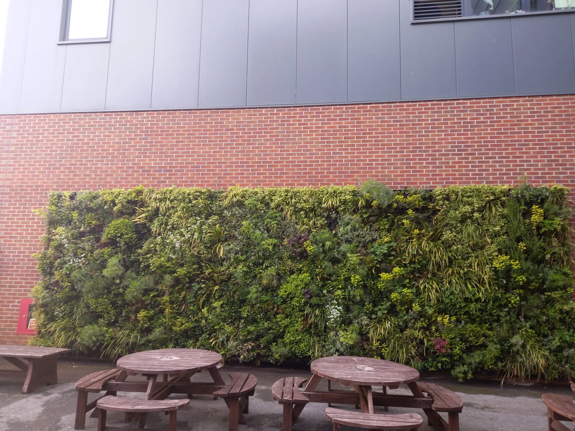 1500m² of planted living green walls in various shapes and sizes, all over the college campus.