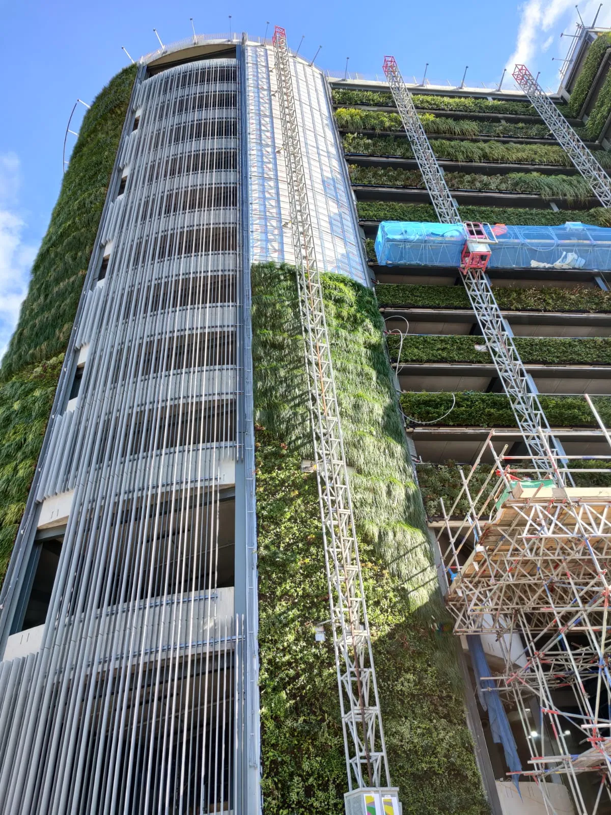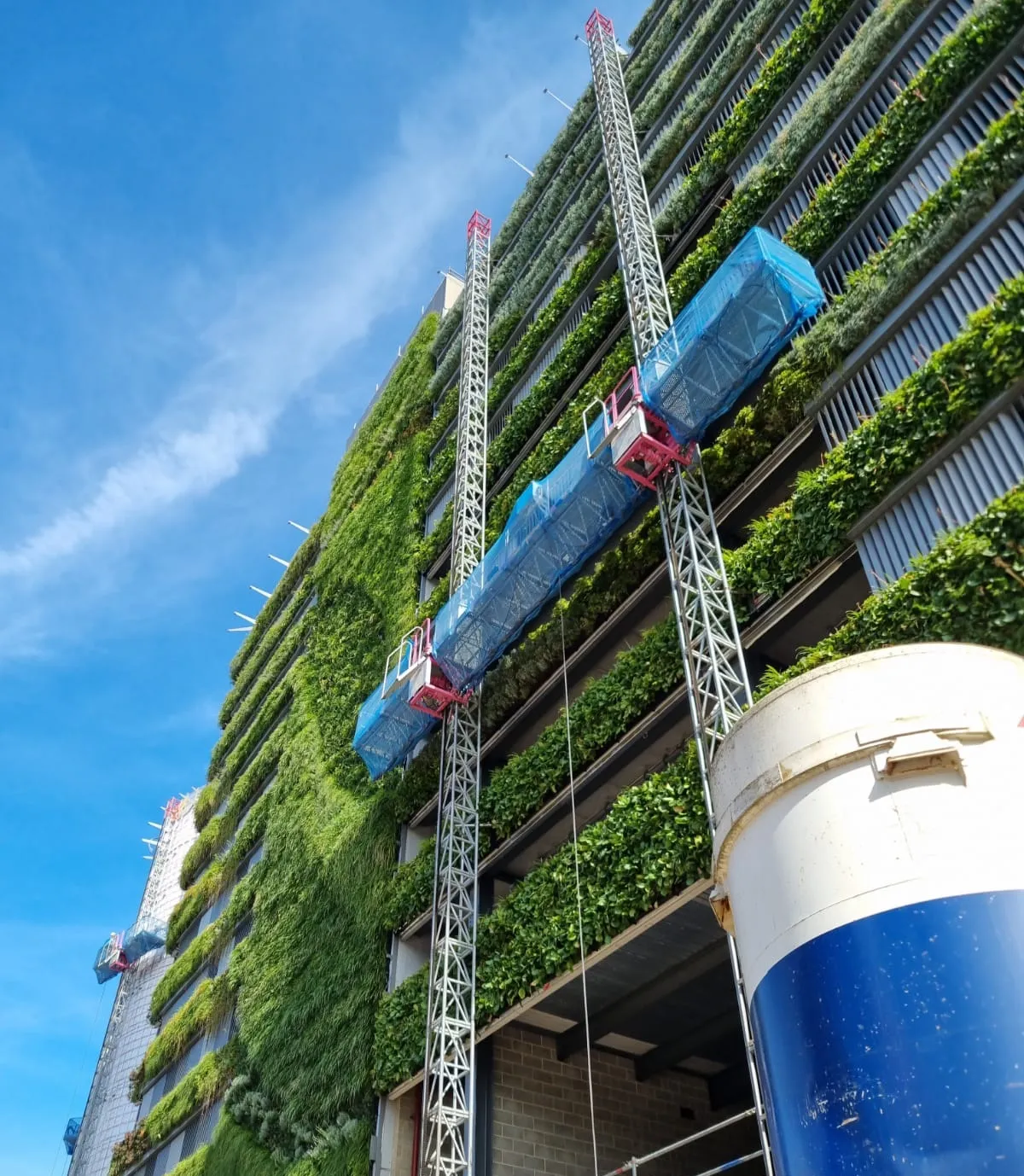 A 300m²+ living wall for a multi-storey car park, grown for 6 months at our nursery, enhancing biodiversity and counteracting pollution.